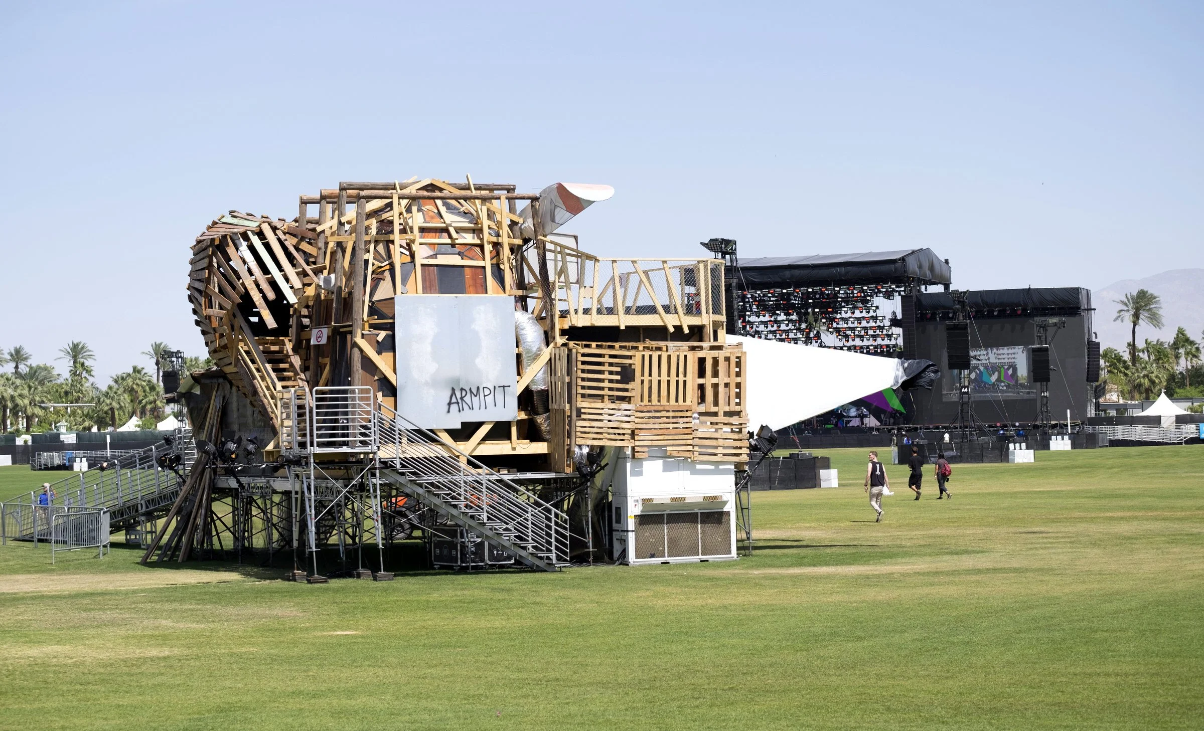 Prior to Coachella Valley Music and Arts Festival this work was shown at the 56th Biennale Arte (Venice, Italy) which took place from May 5 – November 22, 2015. For this iteration of the installation artists adapted the artwork for an outdoor setting and added two new spaces.